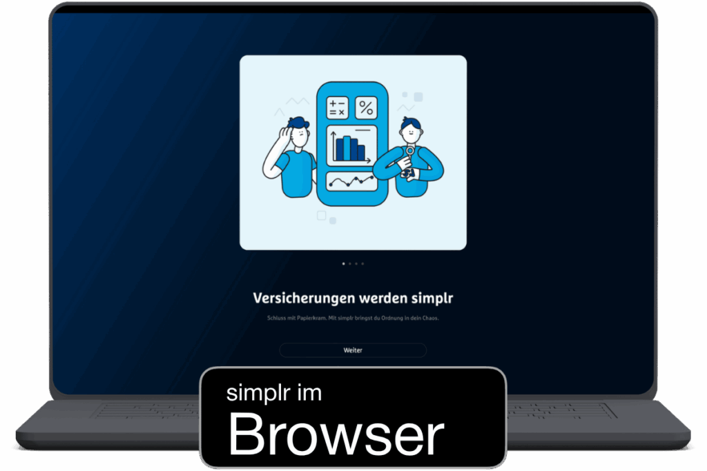 Die Registrierung und Nutzung von simplr sind kostenfrei & unverbindlich. Wir verarbeiten deine Daten DSGVO-konform; Zwecke, Speicherdauer und Widerruf findest du in unserer Datenschutzerklärung. Auf deine Verträge greifen wir nur zu, wenn du den Datenservice (Maklermandat) aktivierst – ohne Mandat keine Betreuung.